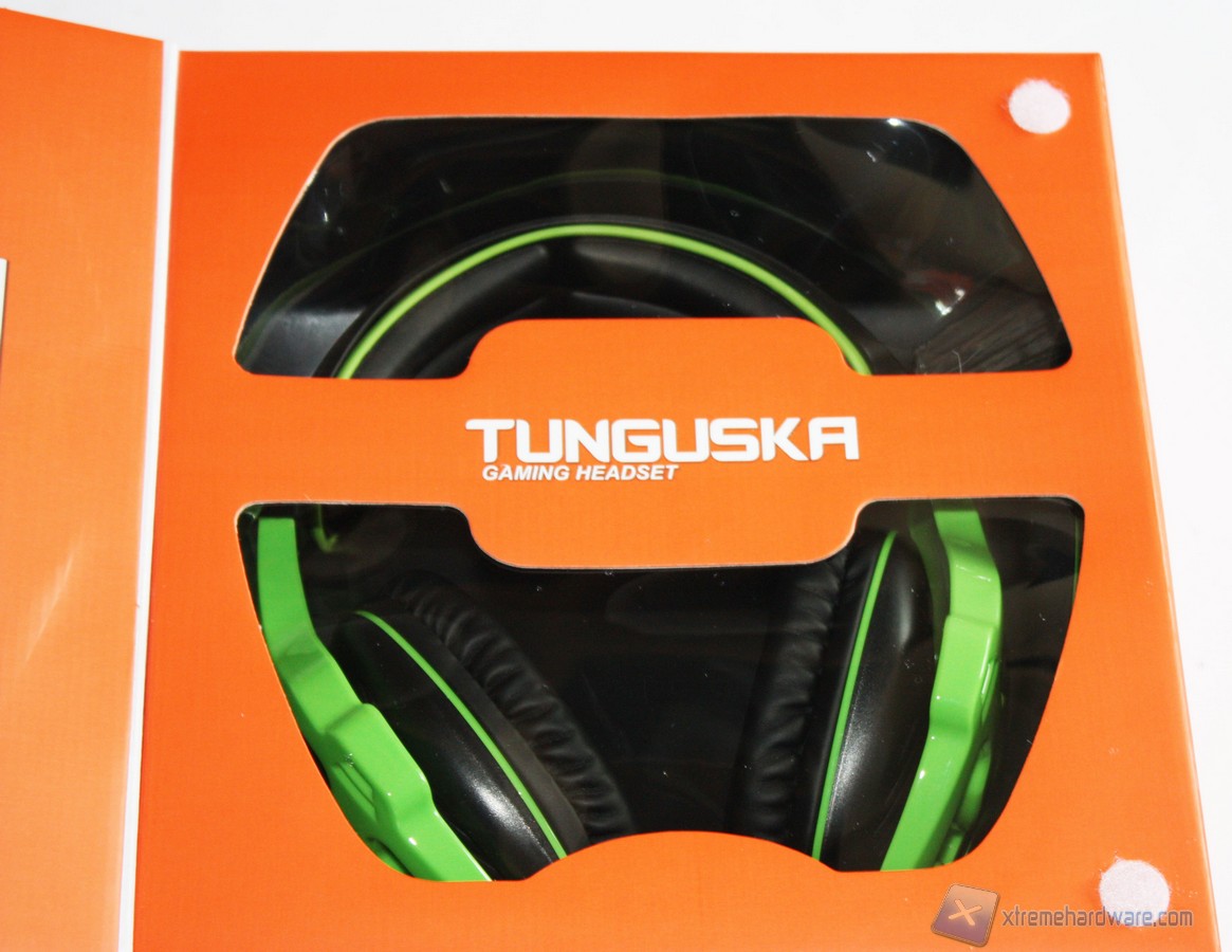 La confezione è in cartone e spicca per il suo colore arancione molto vivace oltre che per la generosa quantità d’informazioni presenti. Come possiamo notare, la confezione è identica a quella delle Tunguska 7.1. Nella parte frontale troviamo il modello delle cuffie, il colore dell’headset scelto e un’immagine illustrativa. Sotto a essa troviamo invece alcune caratteristiche principali dell’headset tra cui un controller con impugnatura Grip, un cavo di circa 2,2 metri di lunghezza, i padiglioni di tipo morbido, la funzione di cancellazione del rumore ed altre informazioni, tra cui la grandezza dei driver che sono da 40 millimetri, quindi decisamente grandi e ampi per carpire i minimi suoni.